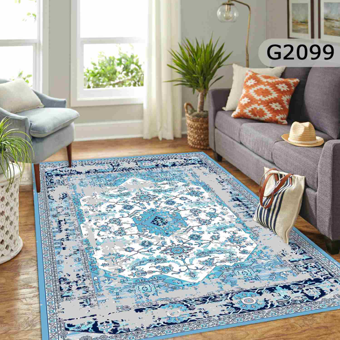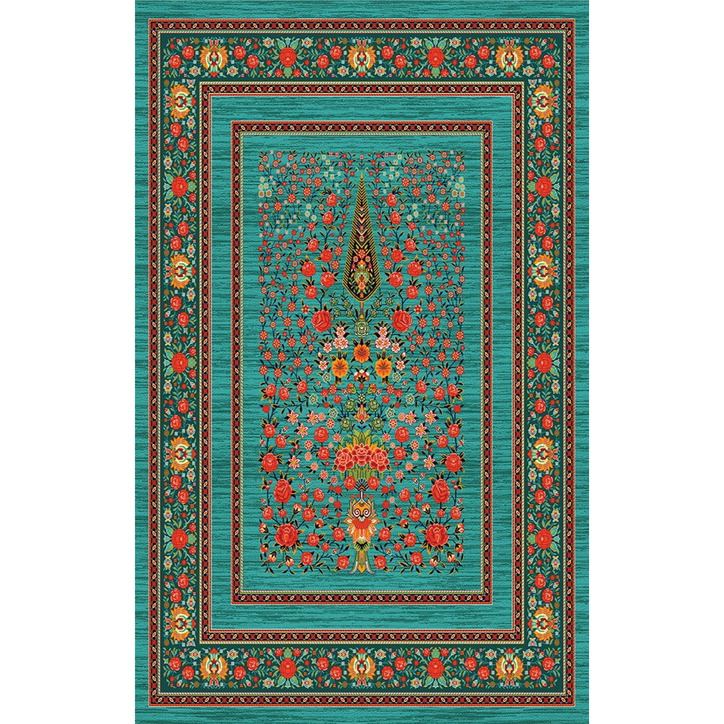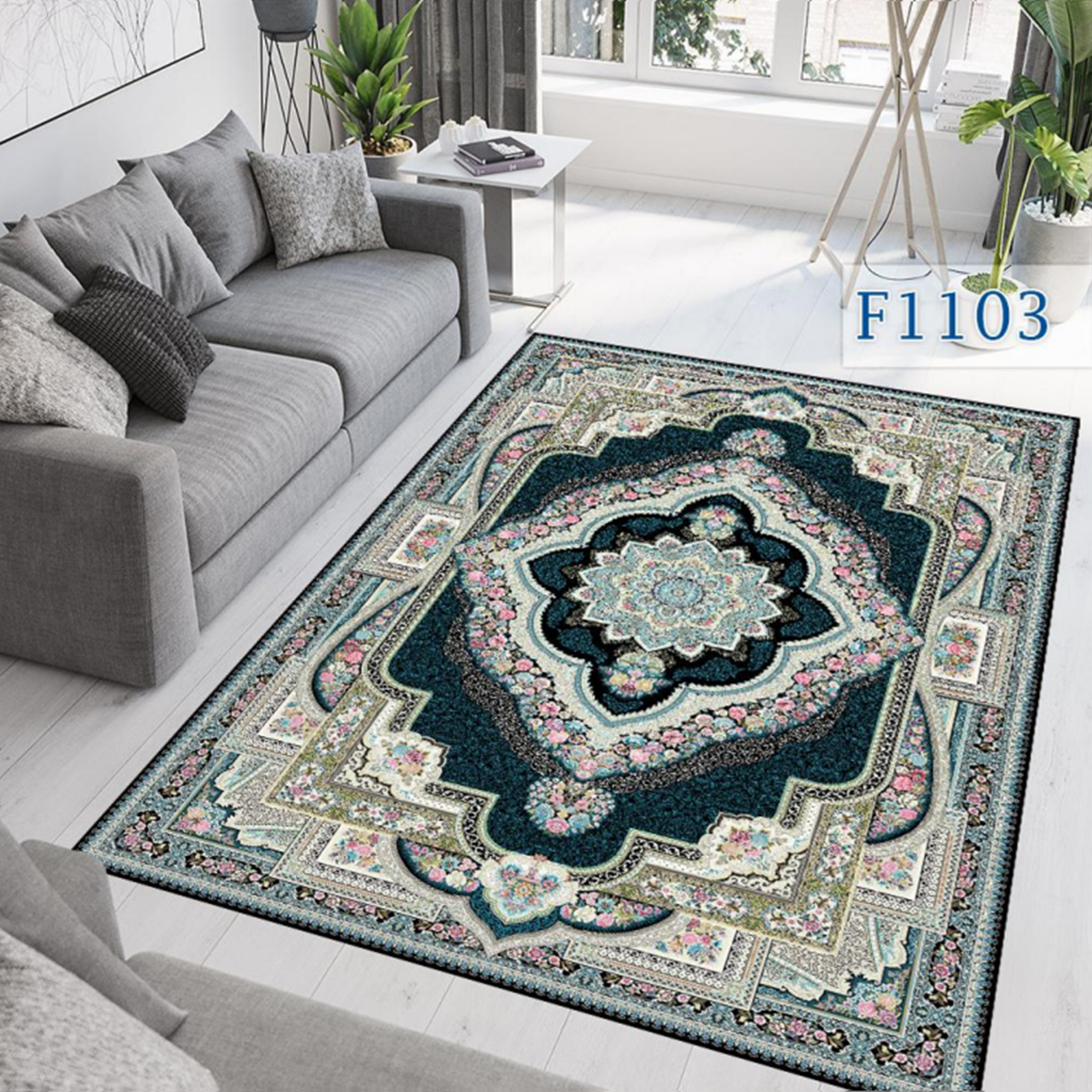 فرشینه مخمل ترک طرح سنتی آبی فیروزه ای کد 101055