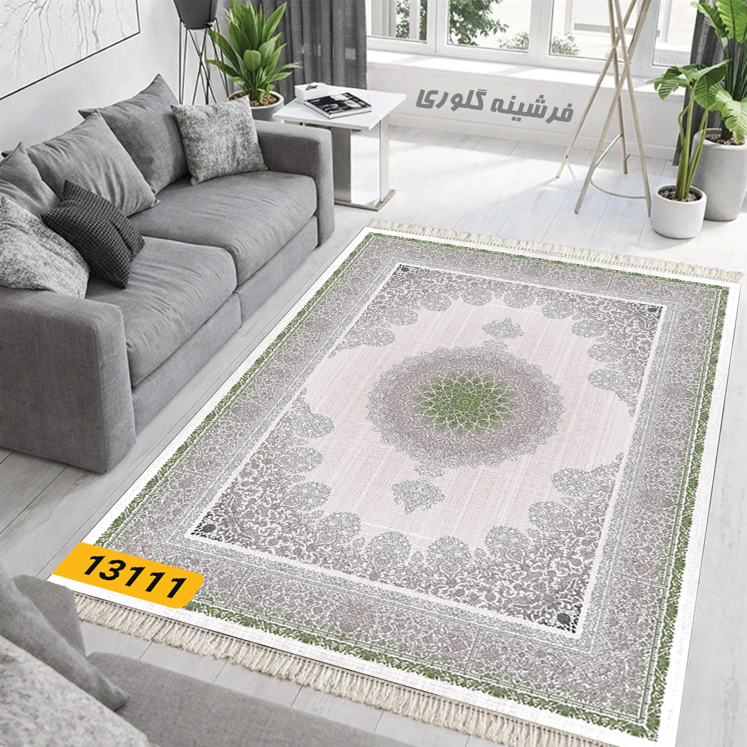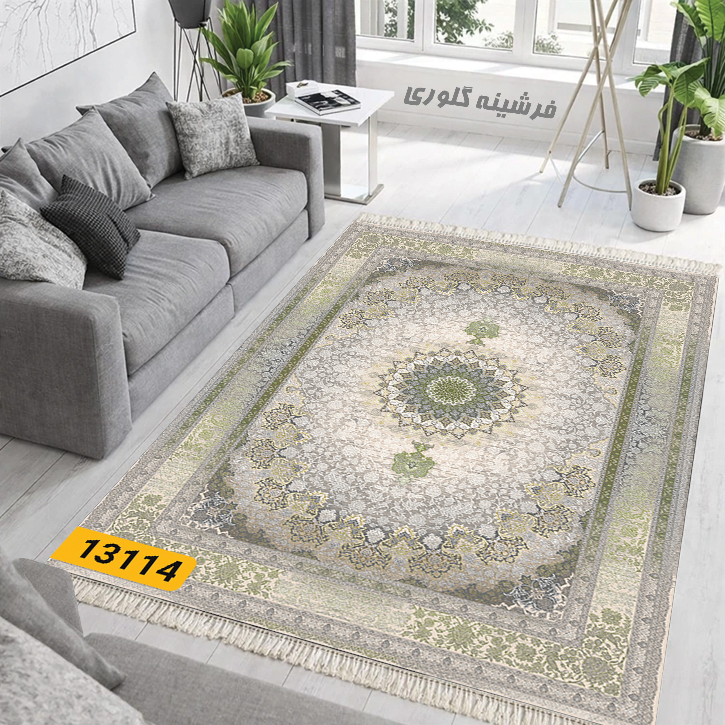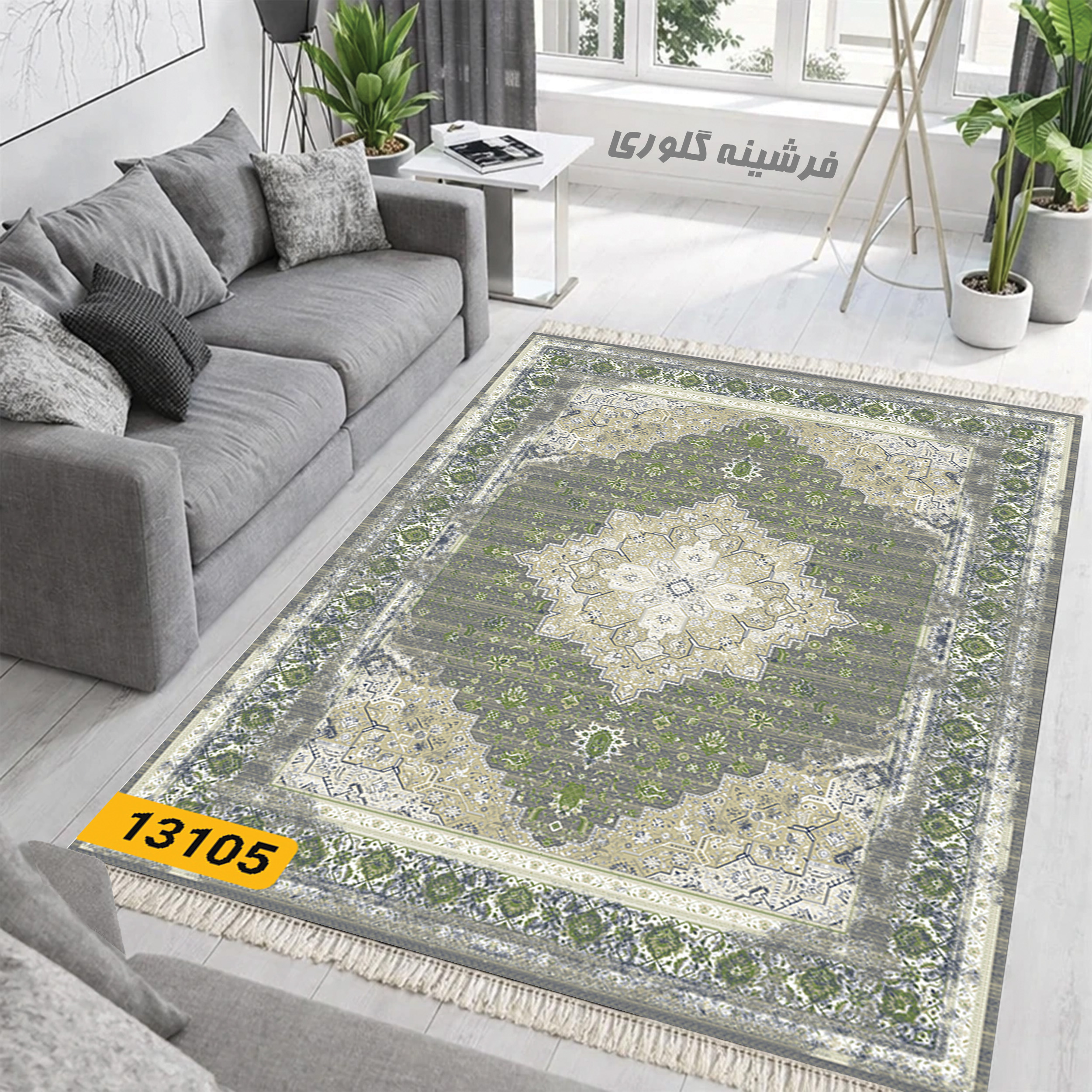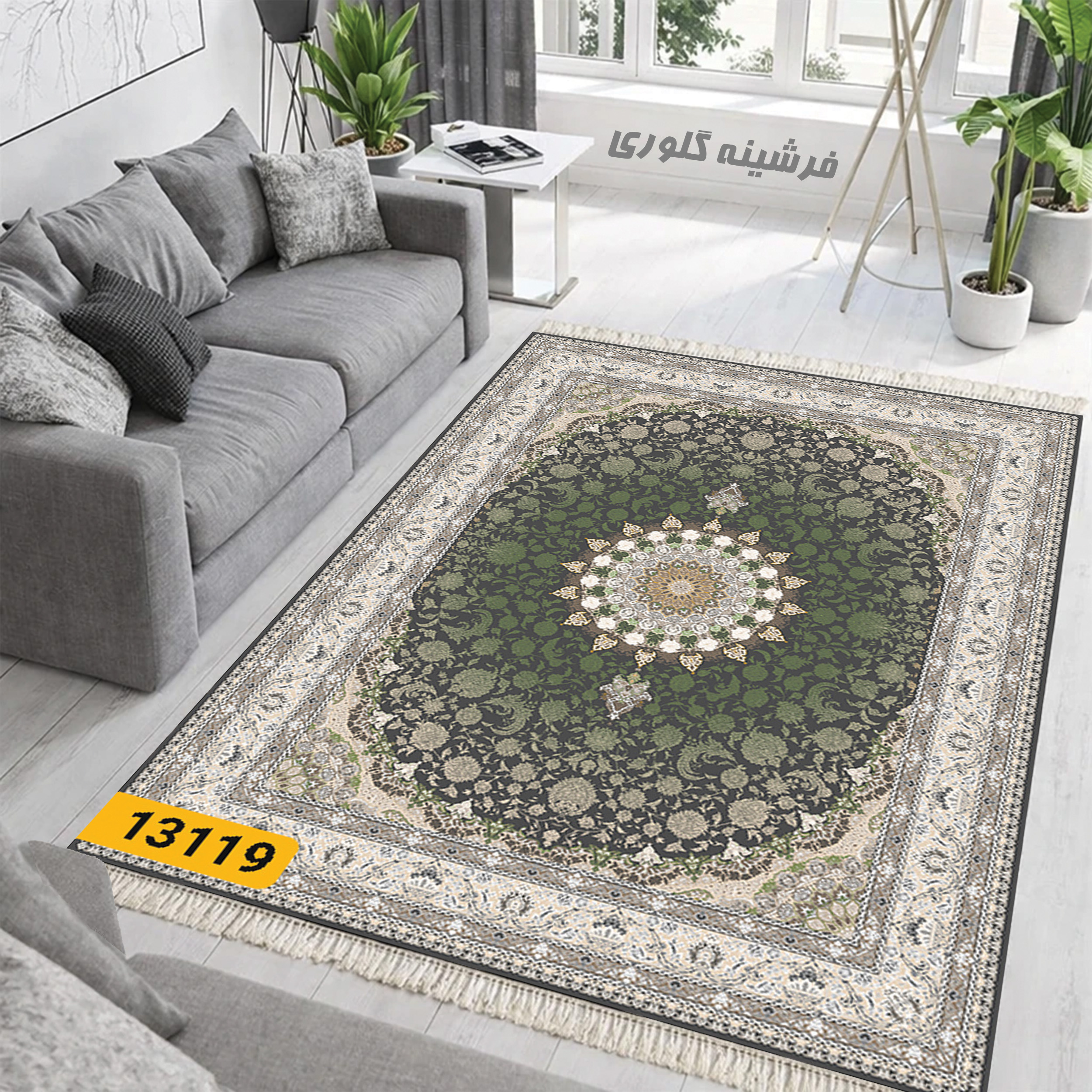 فرشینه مخمل ترک طرح سنتی سبز کد 101047