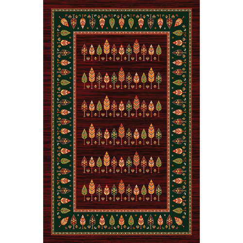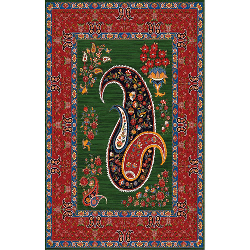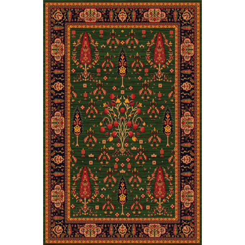 فرش سنتی ترک هازان سبز و لاکی کد RY-101012