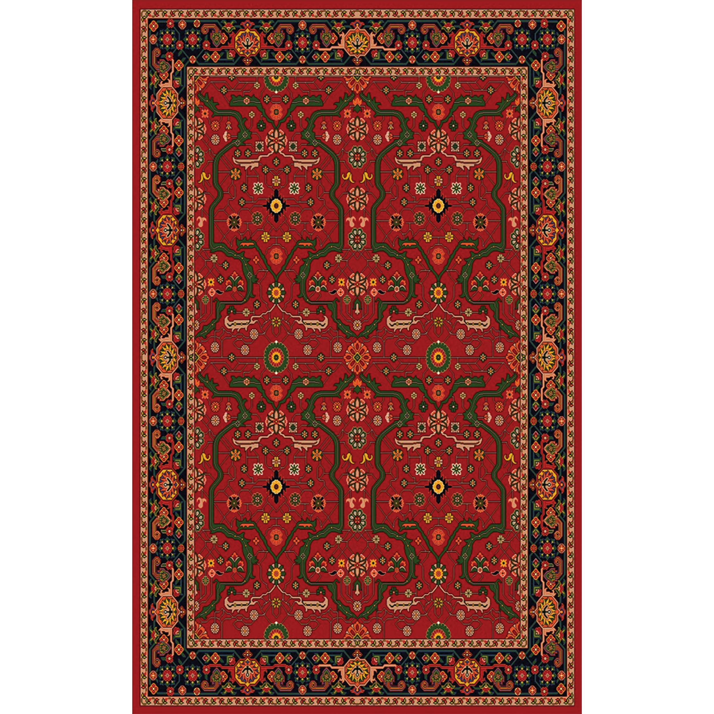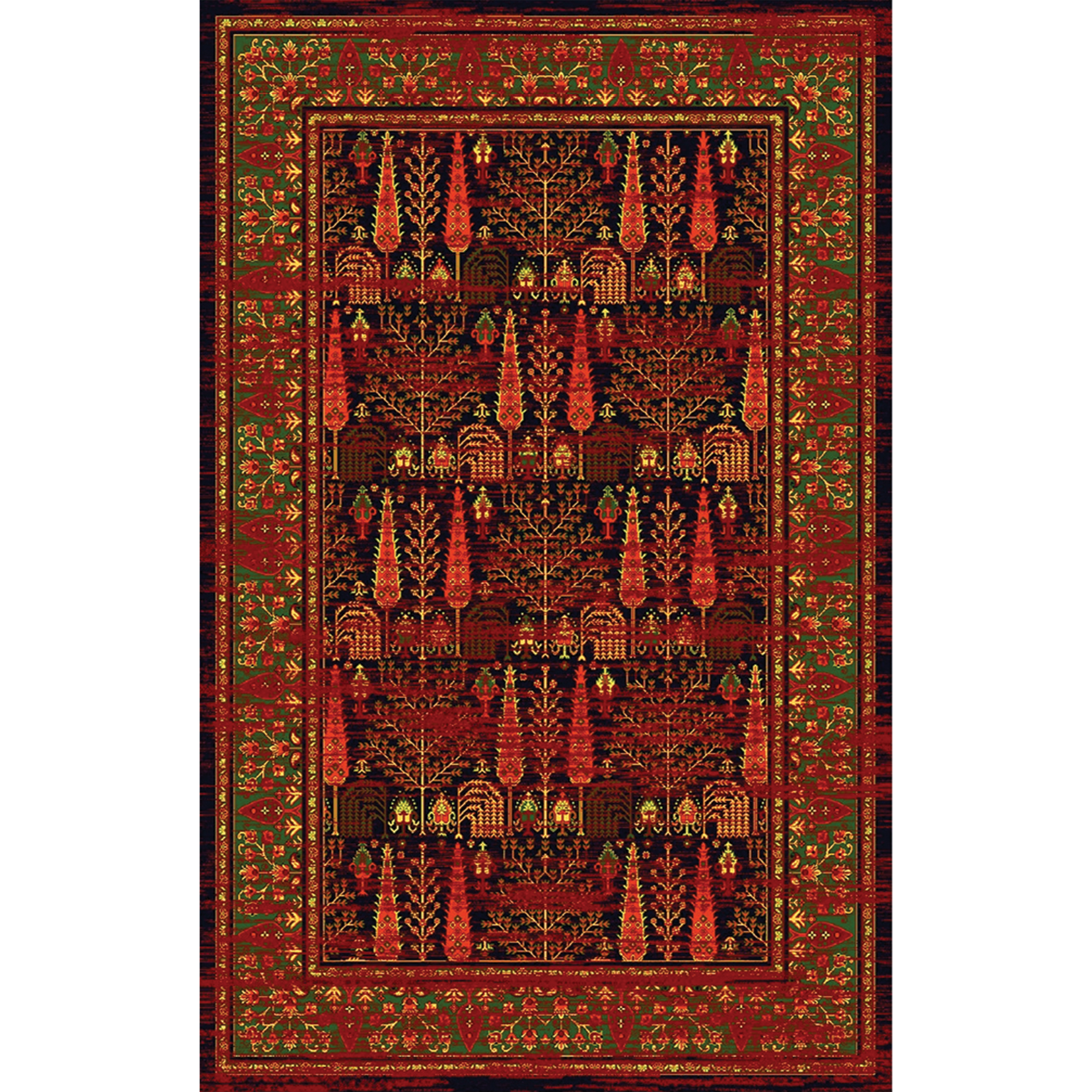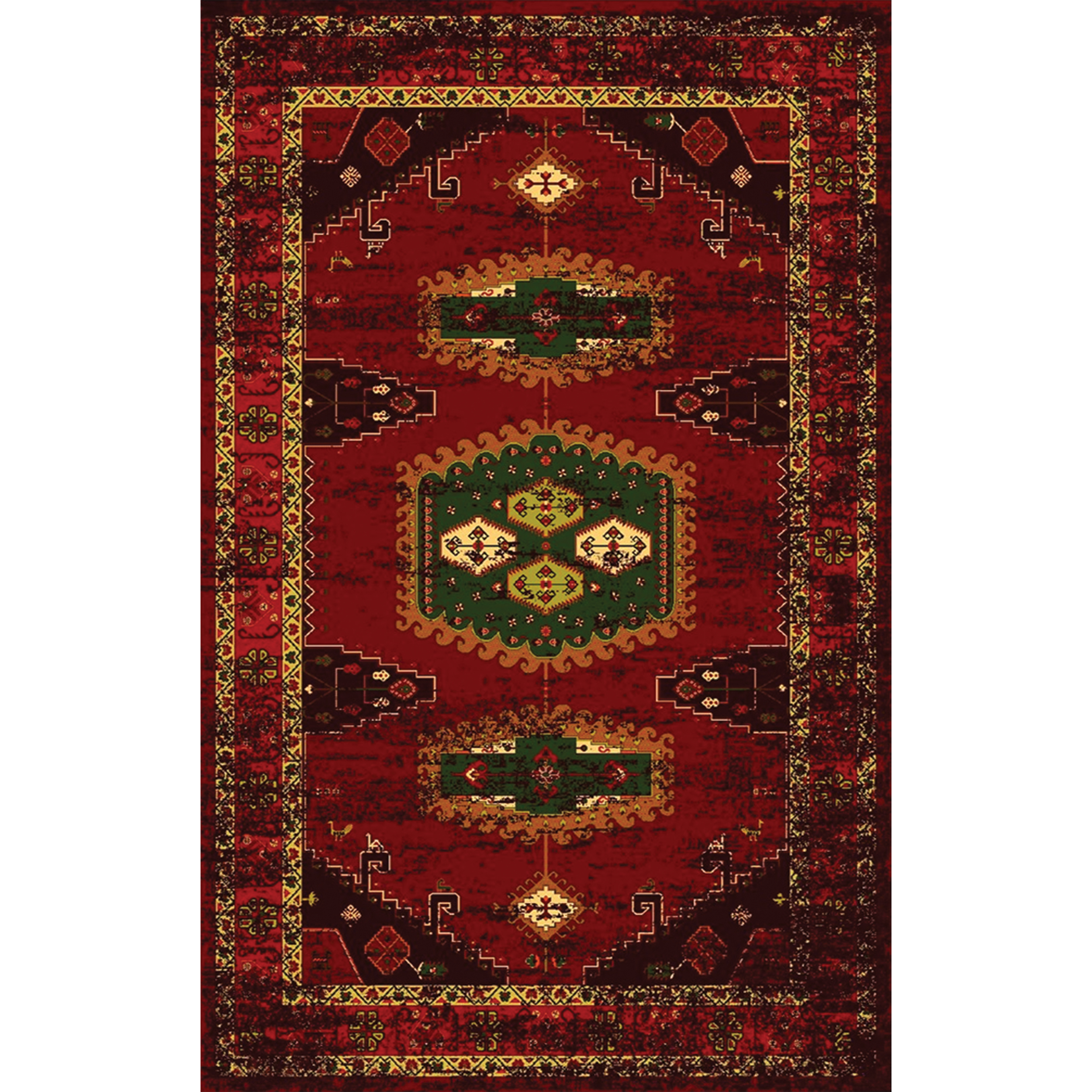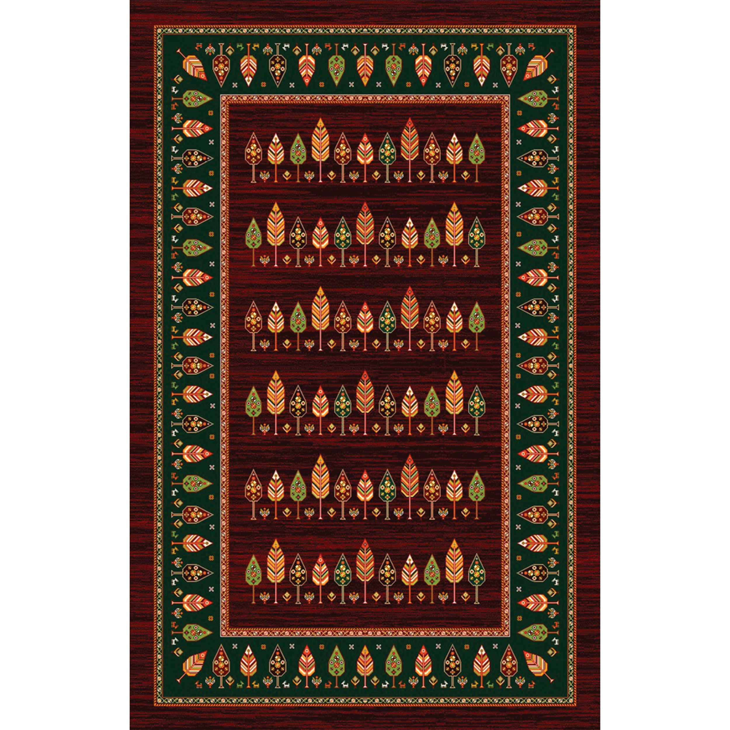 فرش سنتی ترک هازان سبز و لاکی کد RY-101012