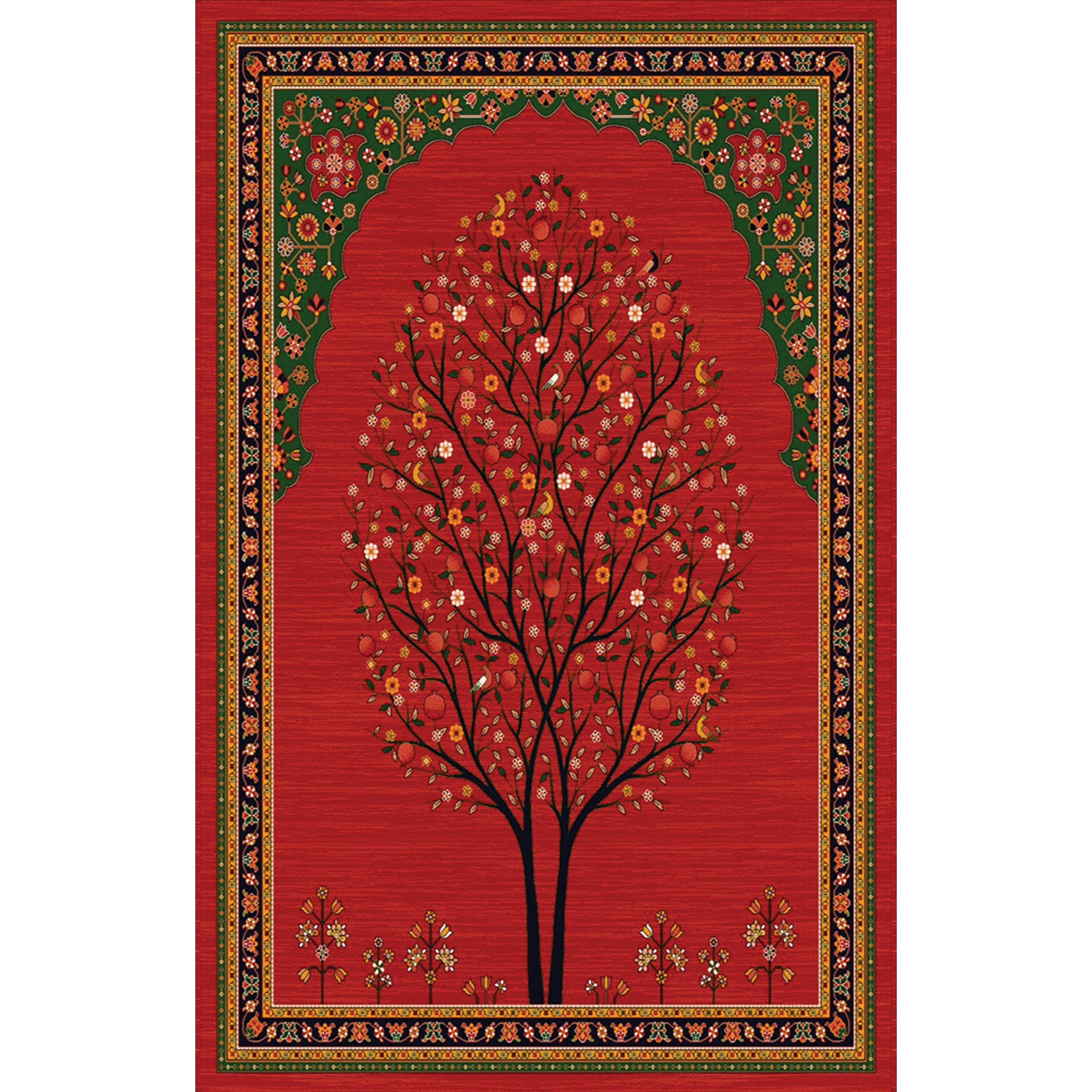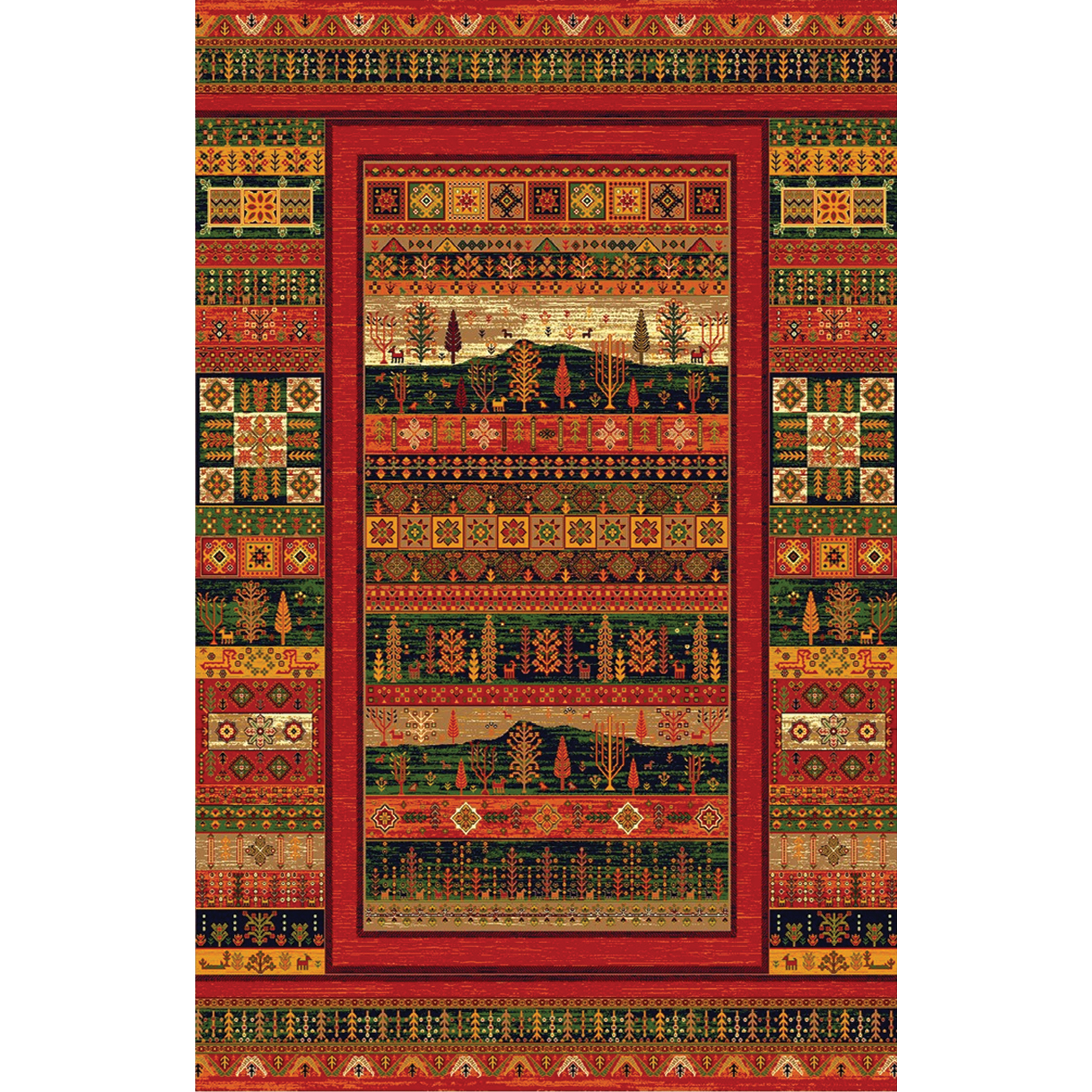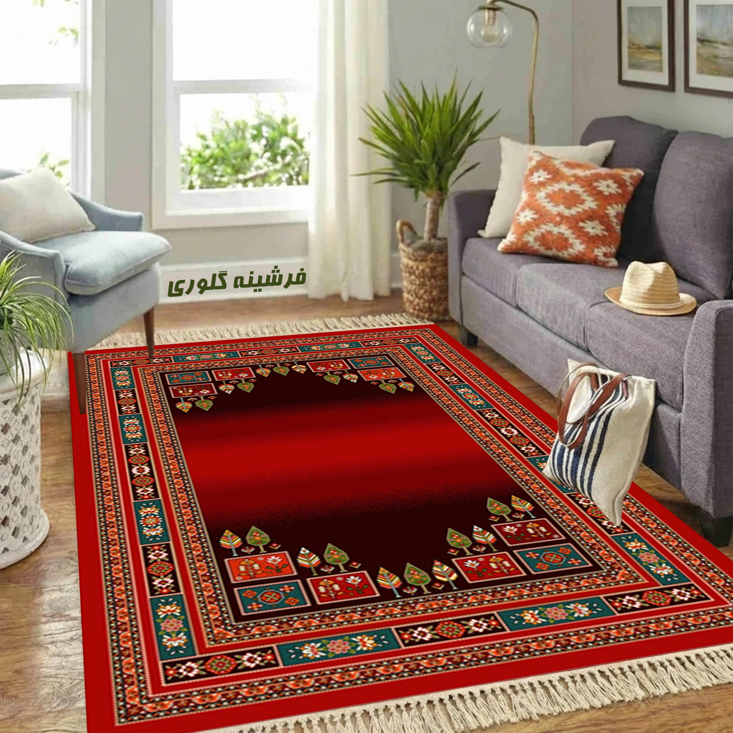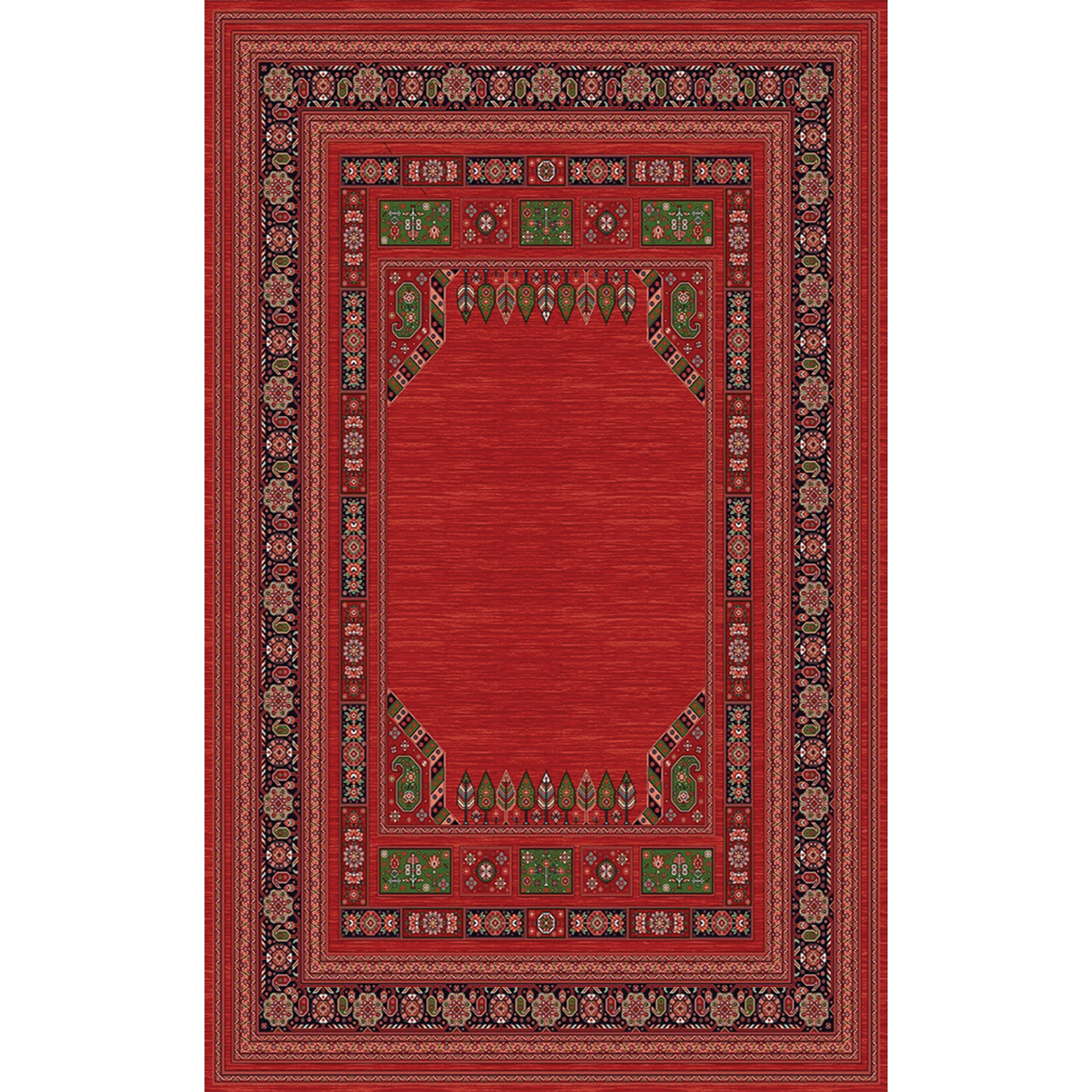 فرش سنتی ترک هازان سبز و لاکی کد RY-101012